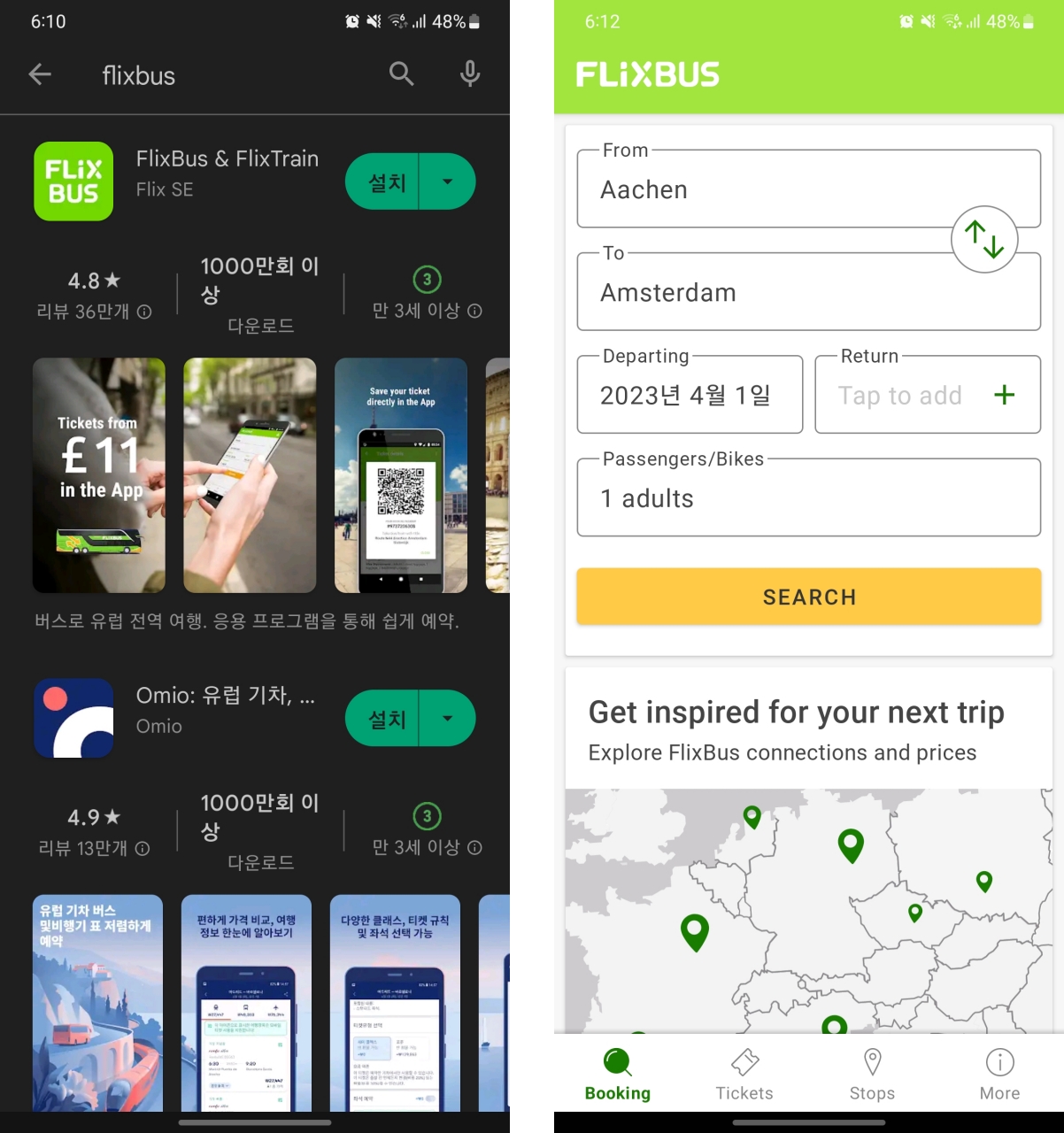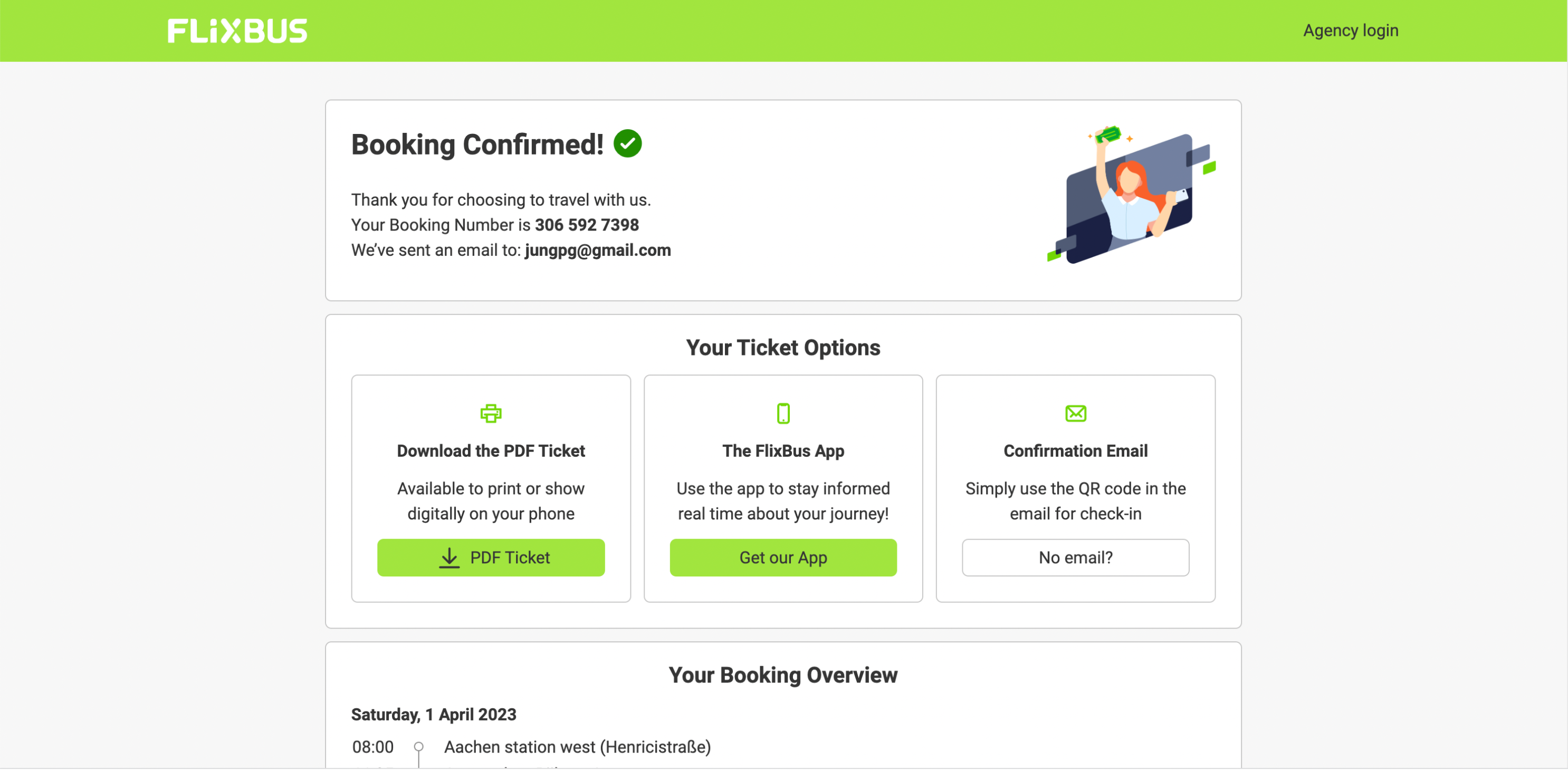 처음만 어렵지 알고보면 간단한 Flixbus 이용방법입니다. 결제 때문에 좀 번거롭기는 해도 사전에 여행계획을 세우고 PC로 예매한다면 크게 문제될 건 없습니다.Flixbus는 유럽 전역에 노선이 다 있으므로 잘 활용한다면 여행 중 교통비를 절약할 수 있는 방법이 될 수 있습니다. 때론 저처럼 기차를 여러번 갈아타는 번거로움도 줄여줄수 있습니다.