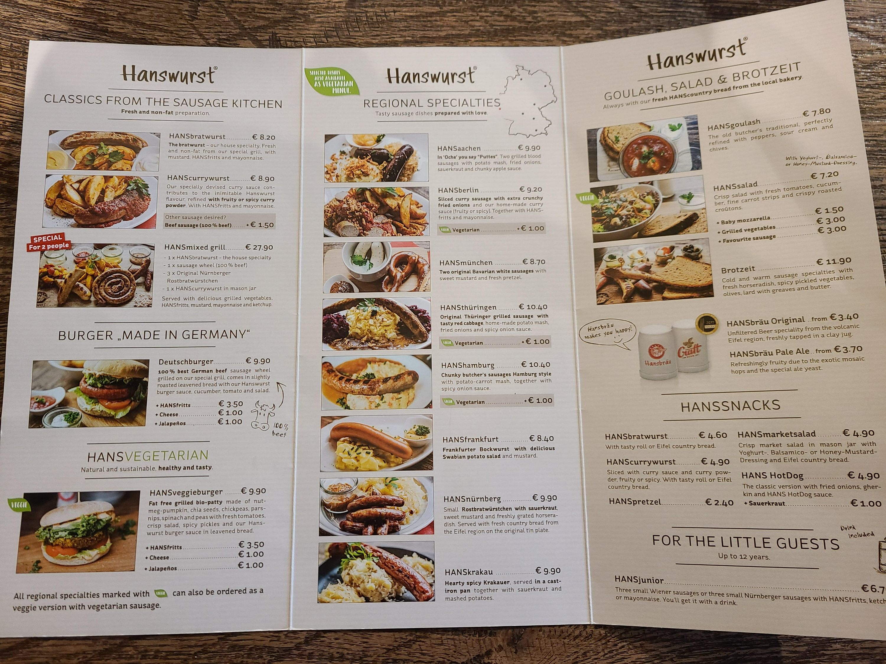 독일 음식으로 유명한 것 중 하나가 소시지입니다. 현지에서 안 먹어볼 수는 없죠. Hanswurst라는 음식점입니다.