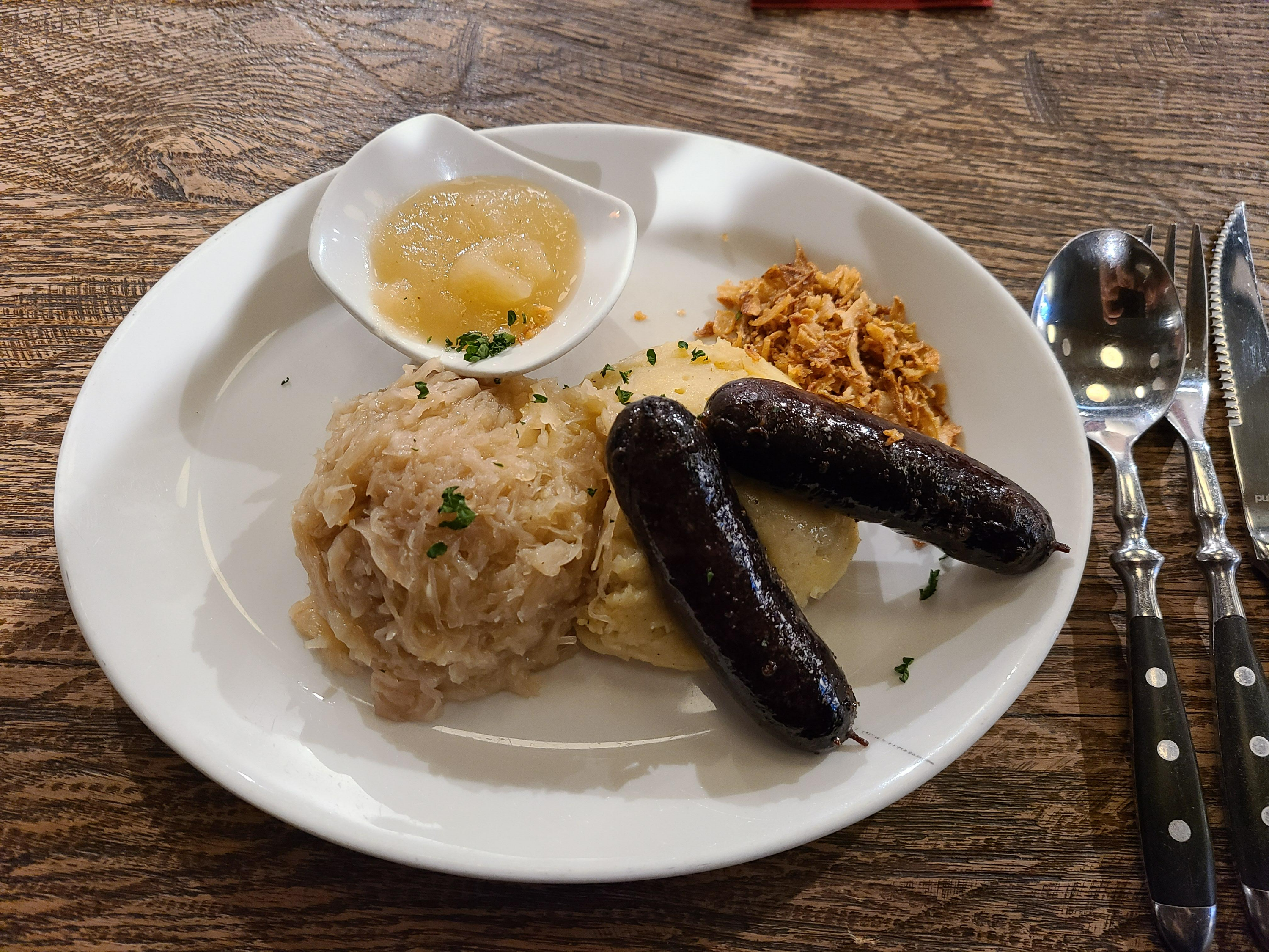 아래는 아헨지역 부어스트(HANSaachen)입니다. 검은색 소시지는 처음인데 말랑말랑합니다. 순대를 생각나게 하는 비주얼인데 소세지계의 순두부라고 할까요? 부드러운 식감입니다. 양은 좀 적습니다. 보통 성인남자에게 식사용으로는 좀 부족합니다. 으깬 감자가 있더라도 말이죠. 절인 양배추는 시큼한 맛입니다.
