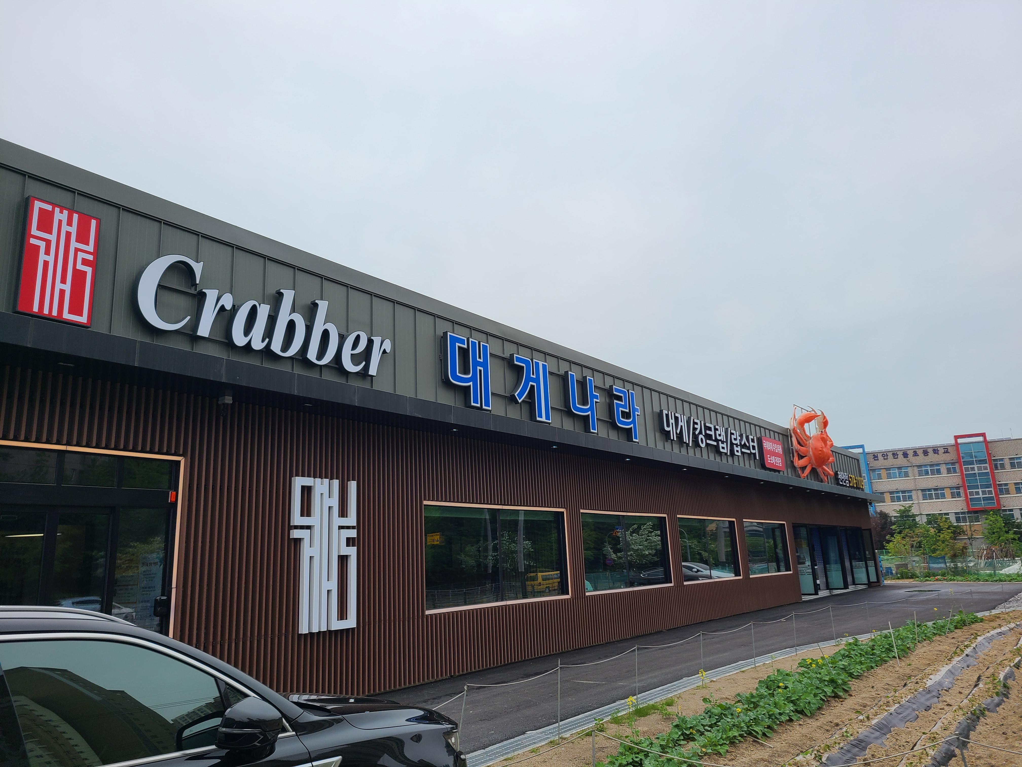 어버이날을 맞아 가족들과 점심식사로 킹크랩을 먹고 왔습니다. 천안에는 대게와 킹크랩 식당이 몇 군데 없었는데 카카오지도 검색 해보니 없던 곳이 새로 생겼네요. 올해 2월에 오픈한 것 같습니다. 평도 괜찮고 평점 알바를 쓰는 것 같지도 않아서 한번 가보기로 합니다.근처에 오면 건물에 붙어있는 커다란 대게가 눈에 띕니다. 도착해보니 새 건물입니다. 건물 앞뒤로는 밭과 과수원이 있어 조금 독특합니다. 의도적인 건 아닌 듯합니다.