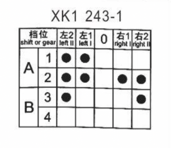 동작 스위치에 써있는 글자를 구글 검색을 해보니 좀 복잡한 스위치입니다. 중국 업체에서 친절하게 Data sheet를 올렸네요. 한참을 들여다보고 배선을 따라 그림까지 그려가며 파악한 결과 이 스위치를 이용한 동작 방식 중 하나인 XK1-243-1 방식을 적용한 제품입니다.