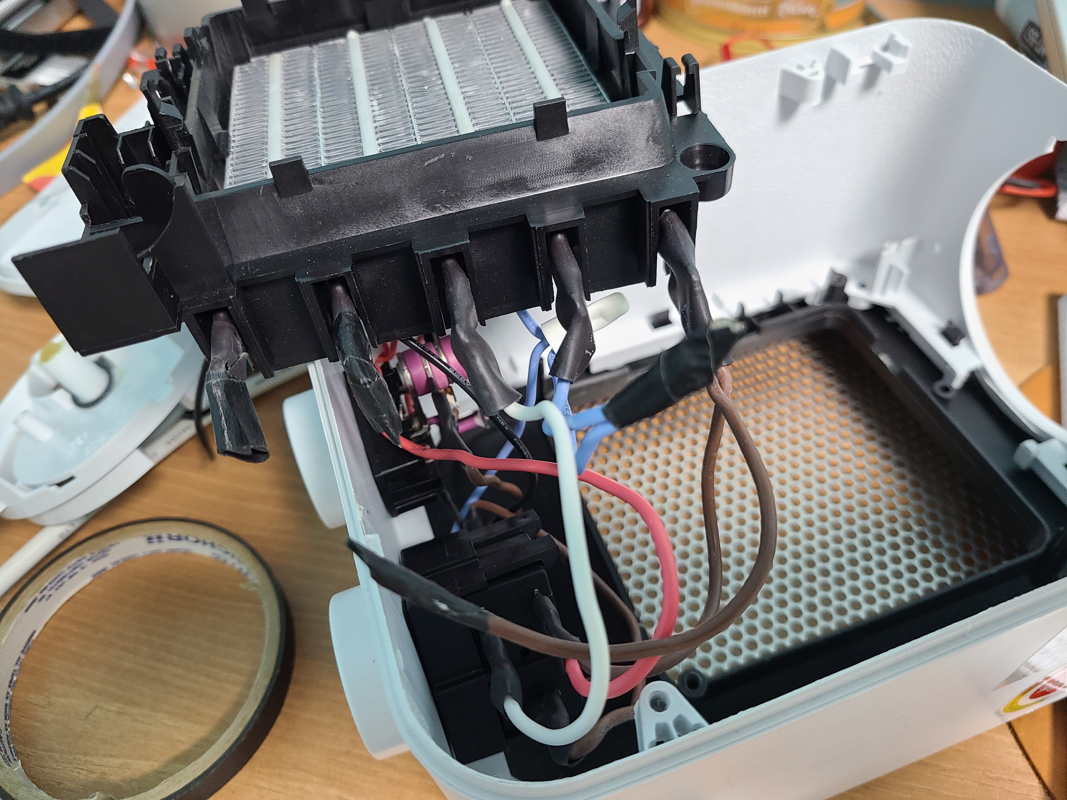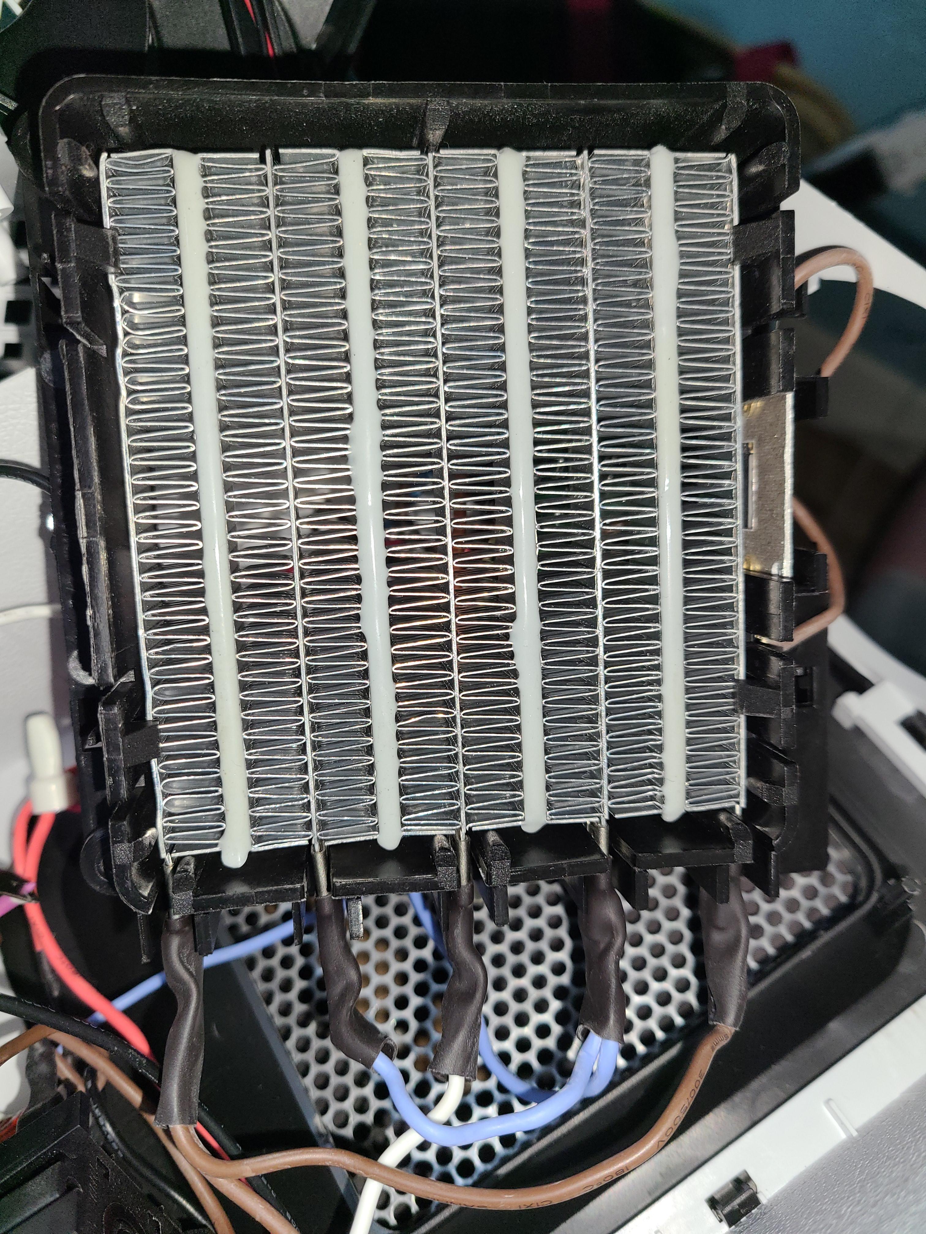 그럼 저는 1단계에서 1개만 동작하고 2단계에서는 2개가 동작하도록 배선 연결을 바꿔주면 될듯합니다. 인터넷을 찾아보면 PTC히터는 그 자체로 전압과 출력이 정해져서 제작되는 듯합니다. 기존처럼 2개, 4개를 사용하면서 소비전력만 줄일 수는 없는 구조입니다. 나머지 2개의 히터는 앞으로 사용할 일이 없겠네요.