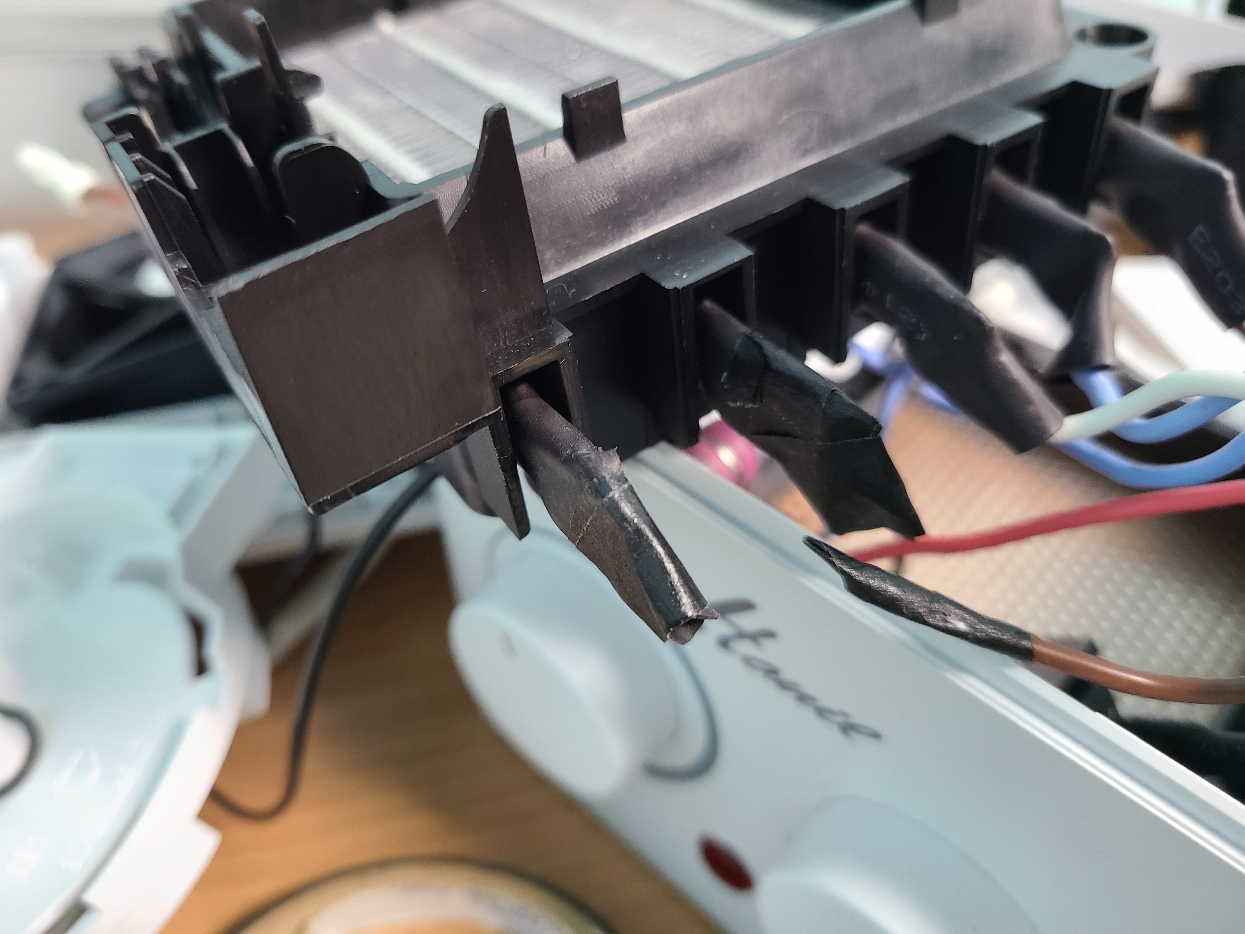 다른 곳을 보아도 저항비로 전류량을 조절한다거나 하는 회로는 보이지 않습니다. 그냥 동작시키는 히터 갯수를 스위치로 조절하는 방식입니다. 그래서 다시 PTC히터 쪽으로 돌아와, 배선 연결만 변경하여 1단에서 1개, 2단에서 2개만 동작시키도록 하기로 했습니다.