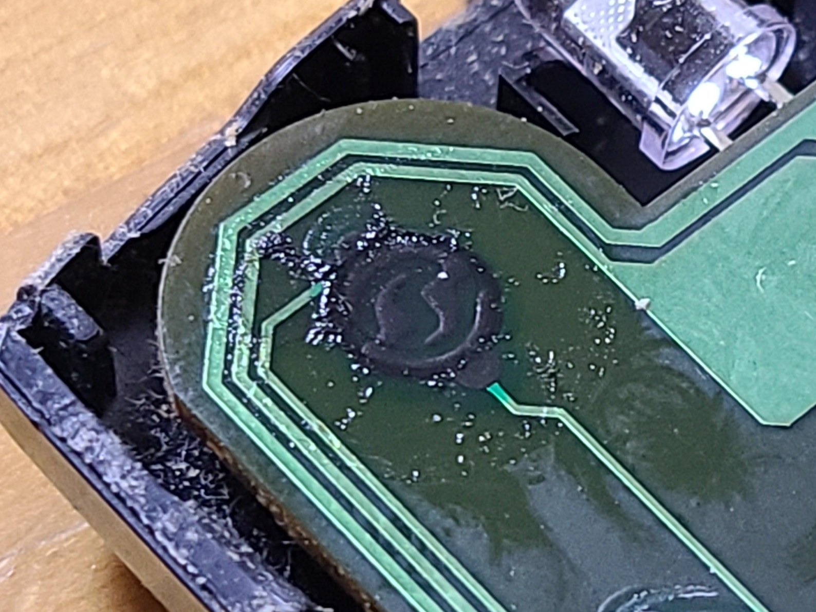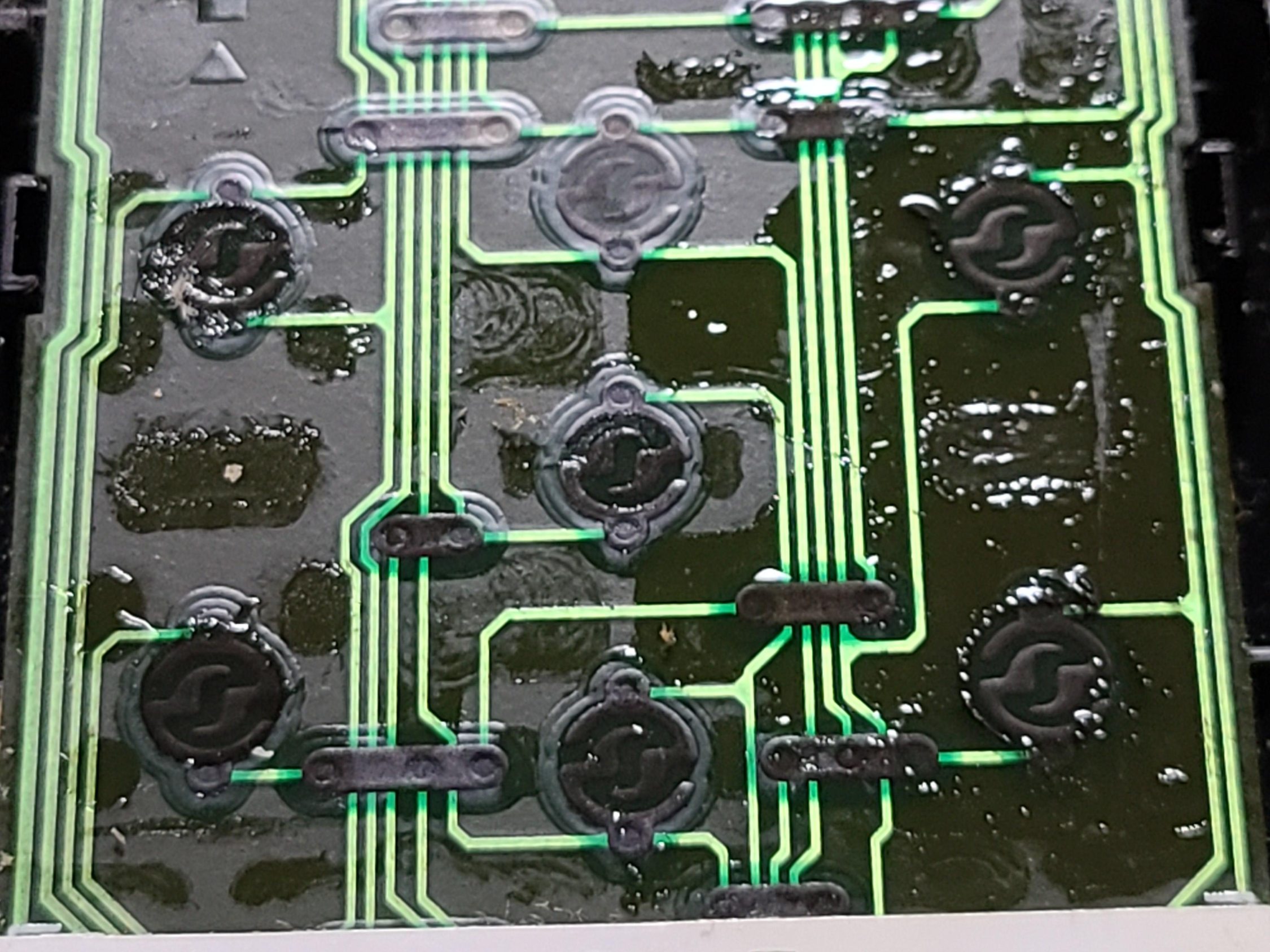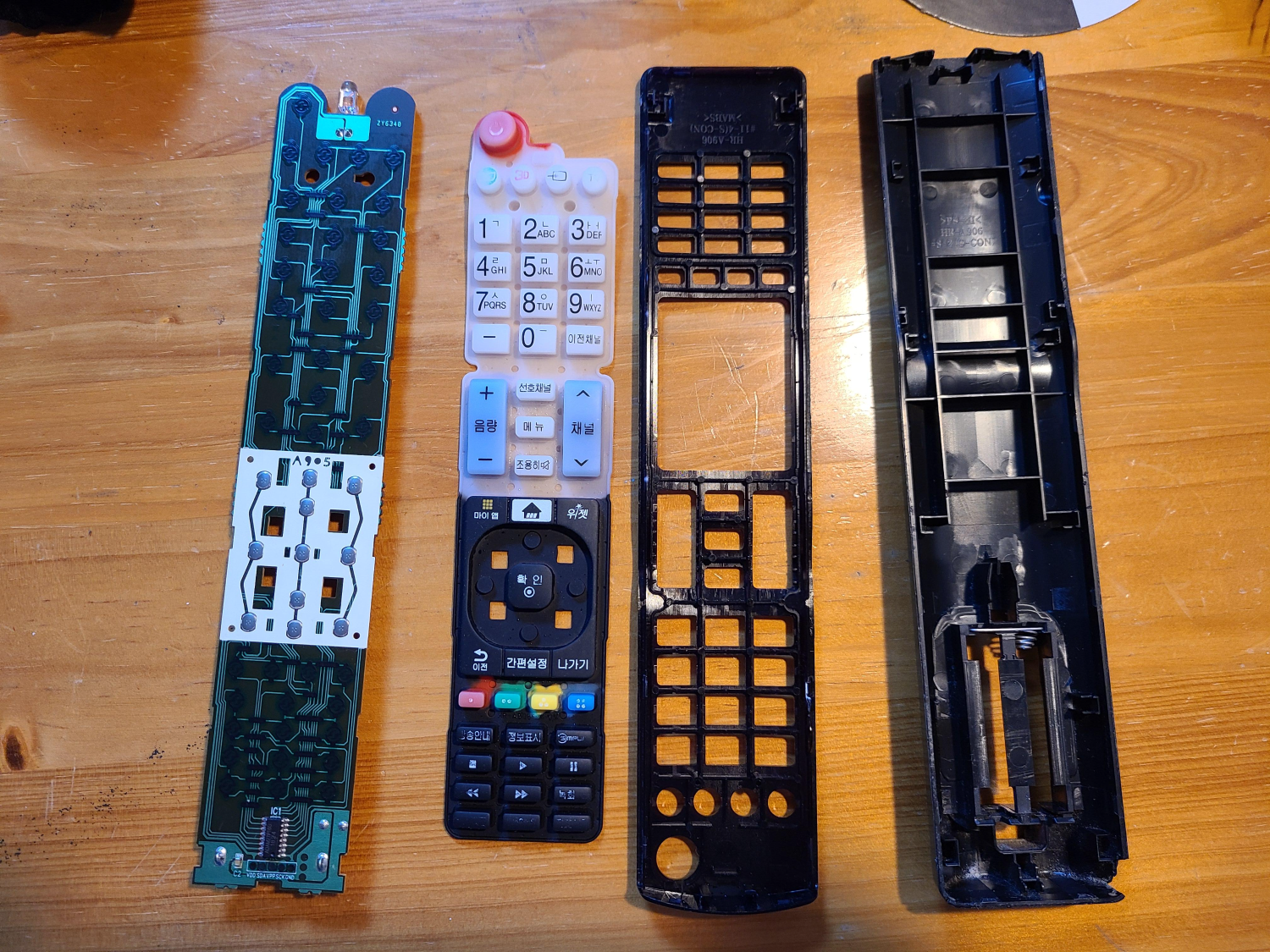 자주 눌렀을 채널과 음량 버튼 부분 기판에도, 고무에도 뭔가 번들번들합니다.