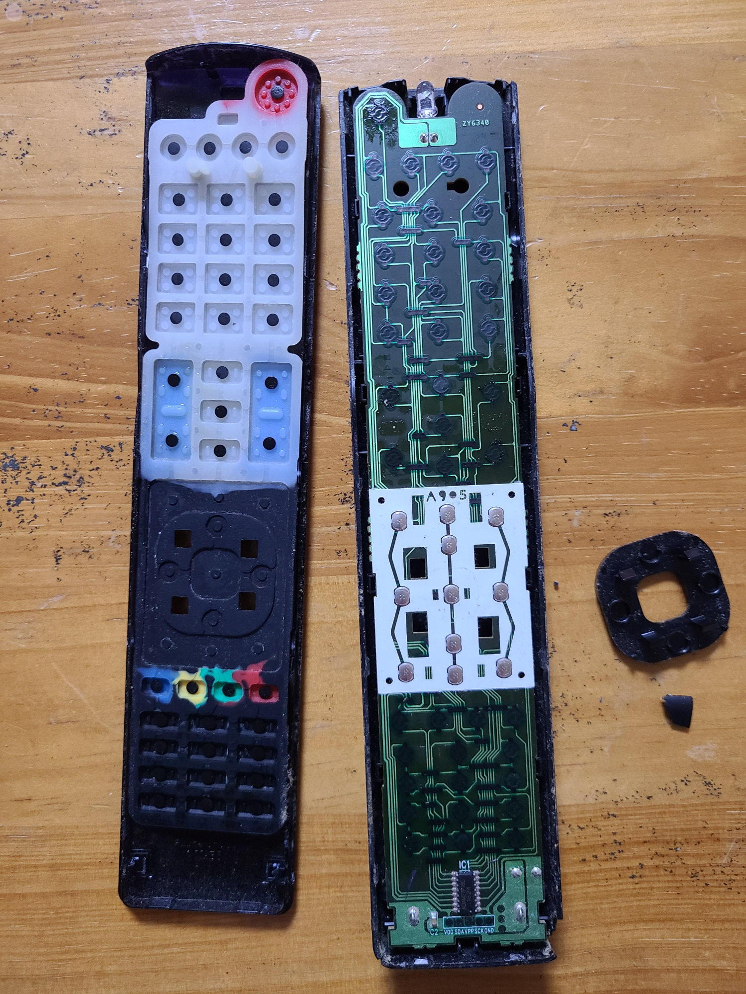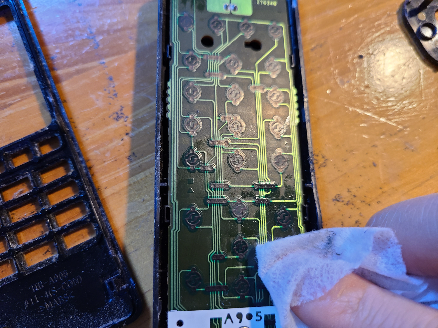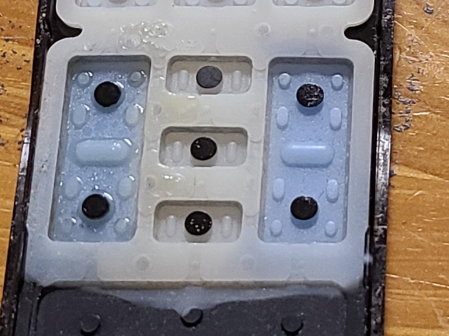 자주 눌렀을 채널과 음량 버튼 부분 기판에도, 고무에도 뭔가 번들번들합니다.