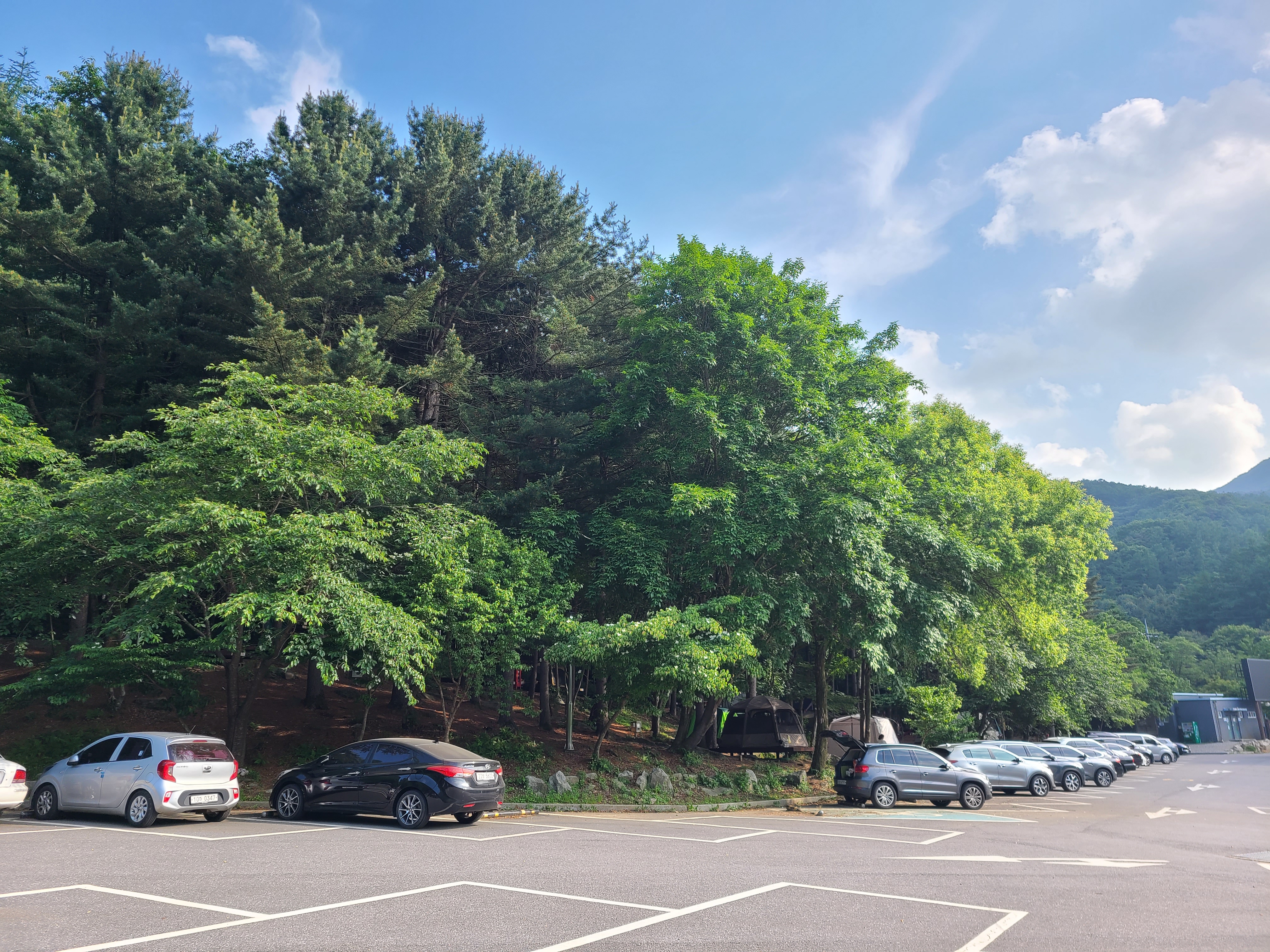 전에 왔을 때 주차장 쪽으로 지나가면서 바라보면 캠핑장 위치가 별로 안 좋게 보였는데 막상 반대로 캠핑장안에서 주차장 쪽을 바라보면 삭막하지는 않았습니다. 와이프랑도 생각보다 괜찮은데 하며 다음에도 제1야영장으로 오기로 했습니다.