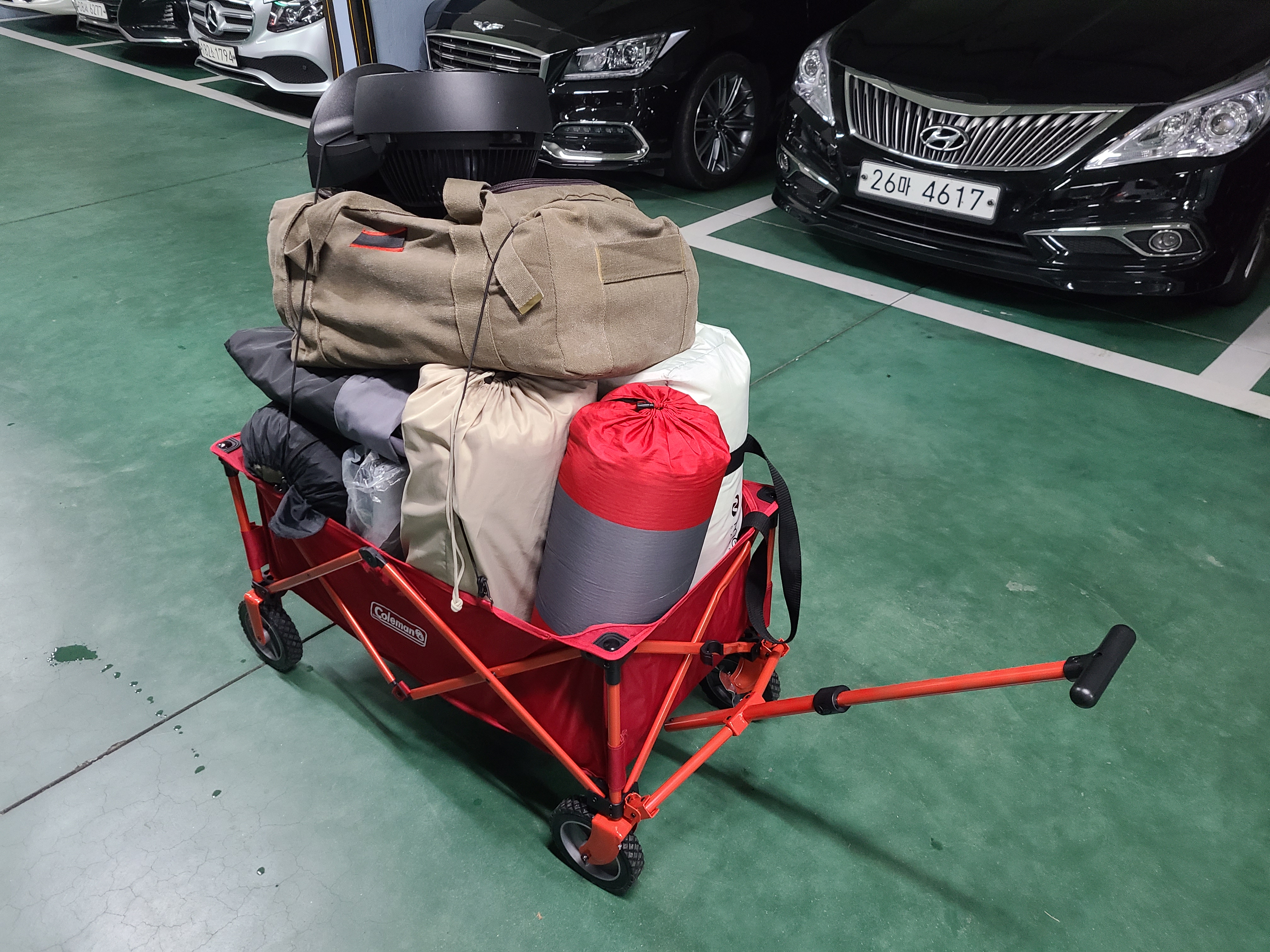 그래서 결국 고민만 하다가 캠핑용 웨건을 들였습니다. 집이 좁아 둘곳도 마땅치 않지만 일단 써보기로 했습니다. 많은 사람들이 쓰는 데는 다 이유가 있겠죠.